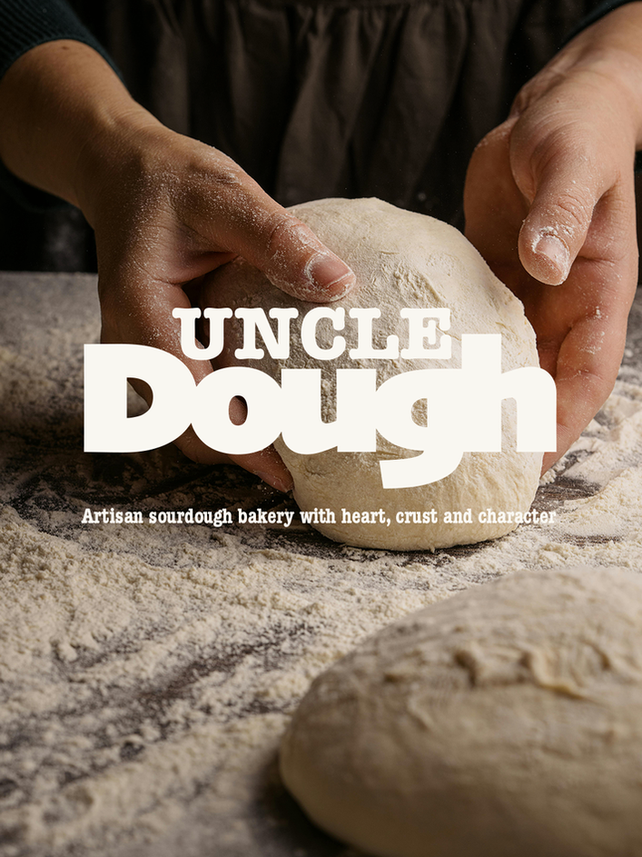 This concept for Uncle Dough blends bold, rustic visuals with a warm and playful tone of voice, capturing the spirit of honest sourdough and a neighborhood-driven brand.